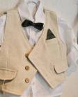 κουστούμι στα χρώματα της ελιάς και καφέ σουέτ παπουτσάκι